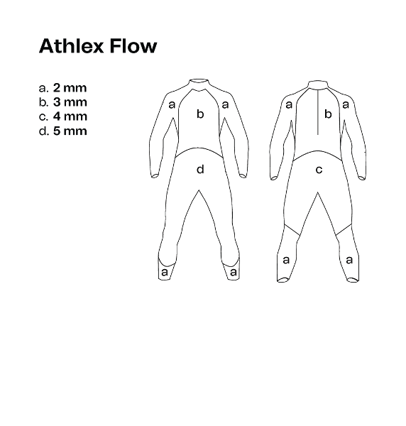 The new Athlex Flow triathlon wetsuit is the perfect balance between elasticity and buoyancy. High-elasticity materials are incorporated in the upper body, while buoyancy technologies are featured in the legs. These technologies allow the swimmer to correct their position in the water, achieving a more hydrodynamic posture.