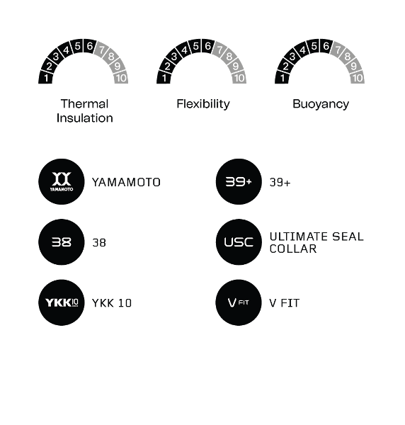 The 2.5 mm Yamamoto 38 material in the torso and legs will provide you with good thermal insulation and buoyancy. You will be able to enjoy the open water for longer, maintaining an elevated position at all times.